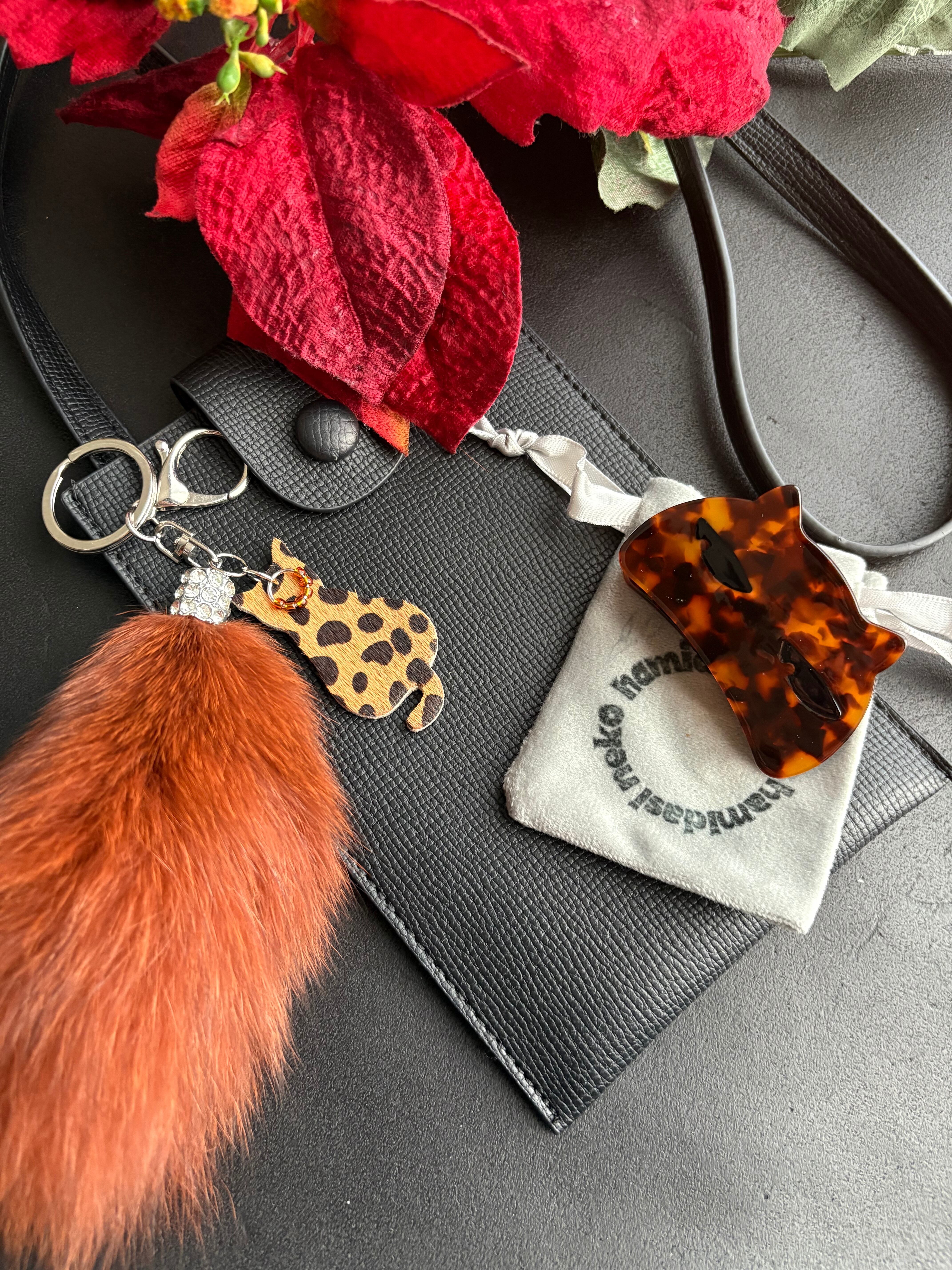 平成リバイバルで再注目されているファーをアレンジし、小さくデザインされたファーチャームが可愛らしさを演出します!さらに、hamidasinekoの人気商品のCatハラコレザーと綺麗なビーズの組み合わせが、特別感をプラス。普段のお出かけはもちろん、大切な人へのギフトにも最適です。